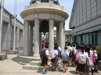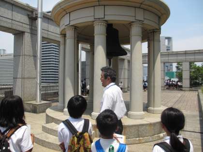 屋上に上がり、カリヨンの鐘を見たり、大阪城を見たりしました。