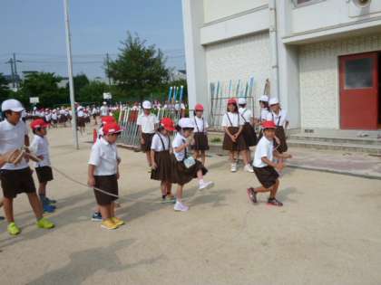 低学年の子が怖がらないように、低いところで波をつくって跳ばせてあげるなど、優しいお兄さん、お姉さんの姿がたくさん見えました。