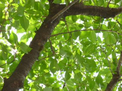 体感気温が2度ほど高くなりそうな音量です。地中での長い暮らしを終え、蝉たちは精一杯、地上での命を謳歌しています。(桜の幹にとまっている蝉の姿、見えるでしょうか?)