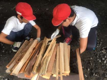 火をおこす係、ルーをつくる係、ご飯を炊く係、協力しておいしいカレーにしてくださいね。