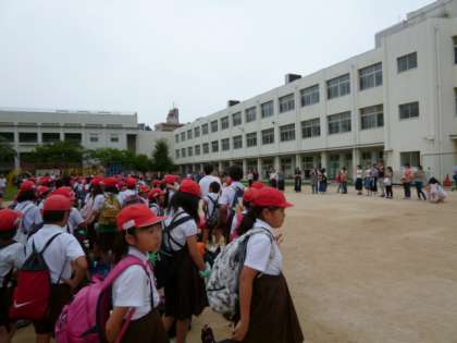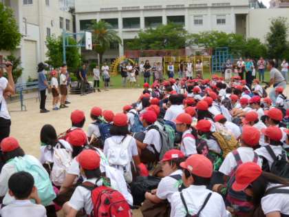 みんなで、お出迎えいただいた保護者の皆様に、「ただいま帰りました!」とあいさつしました。