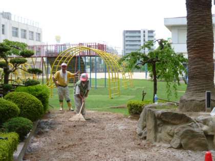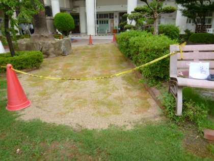 地域の方が芝生の補植をしてくださり、芝生の面積が広がりました。