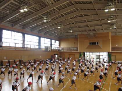毎日たくさん汗をかきます。お茶やタオルを必ず持たせてあげてください。