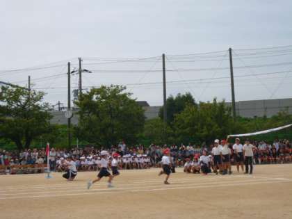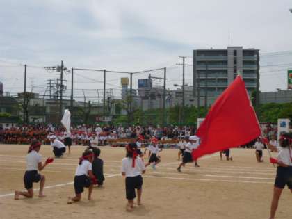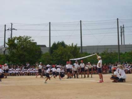 応援団も、旗を振り、声をあげて1年生を励ましています。