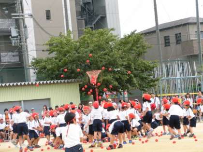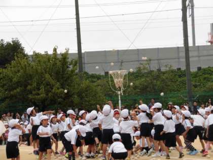 1年生の団体競技「ねらって!わっしょい!」玉入れです。