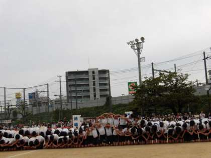 音楽に合わせて、まるでひとつの生きもののように、全員が動きます。