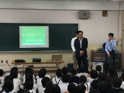 6時間目に新東淀中学校の先生方にお越しいただき、中学校生活についての説明をしていただきました。