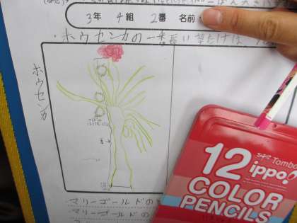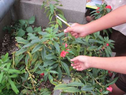 ホウセンカとマリーゴールドを観察している様子です(*^_^*)