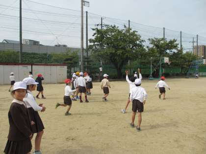 鬼ごっこをするクラス、ドッジボールをするクラスと元気いっぱい遊ぶことができまし