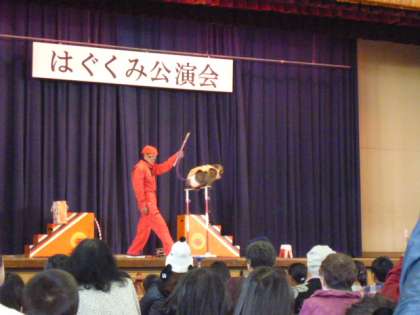 はぐくみ公演会の第2部は、「お笑い猿回し」です。
