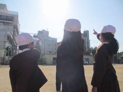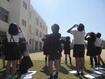 しゃ光板の使い方の学習をしっかりして、校庭で「しゃ光板」を使って、太陽を見ました。