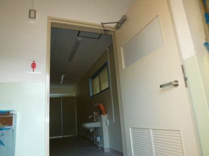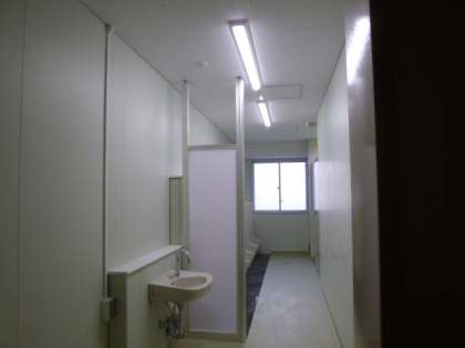 前回のお知らせではできていなかった便器も扉も照明器具も、もうついています。