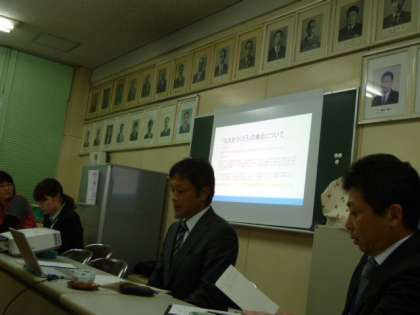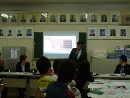指導講評には、加賀屋東小学校より當麻俊和先生をお迎えしました。授業風景を写真に撮ったものを示しながら、明日からの授業をどうすればよりよい授業にできるか、非常にわかりやすくお教えいただきました。