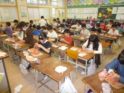 事前にパソコンの授業でシーサーについて調べ学習をし、