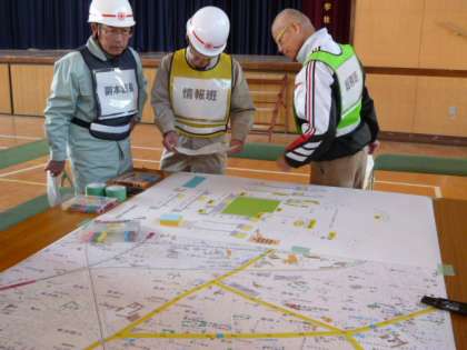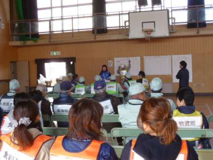 情報班、救護班、物資班、食料班などの各班に分かれ、もしものときに備えたロールプレイング形式での訓練が行われていました。