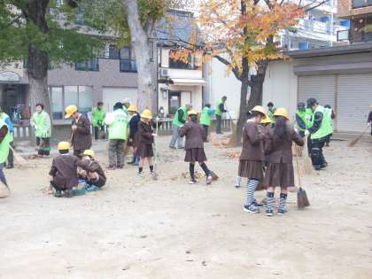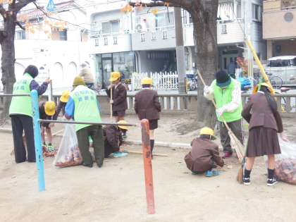 地域の方々と一緒に公園でゴミ拾いや落ち葉拾いを行いました。地域の一員としての自覚と社会参加の意識を高めました。子ども達からは「きれいになって気持ちがよかった」、「またやりたい」などの声が聞かれました。