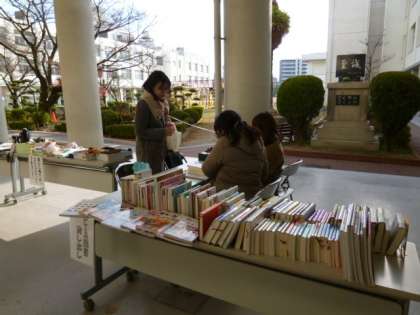 期末個人懇談会の期間中、ピロティでは、PTAの図書貸し出しが行われています。寒い中のお当番、本当にご苦労様です。