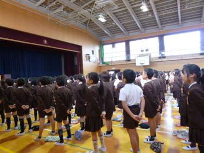 新しいお友だちも迎え、子どもたちは晴れやかな表情で市歌や校歌を歌い、校長先生のお話を聞いていました。