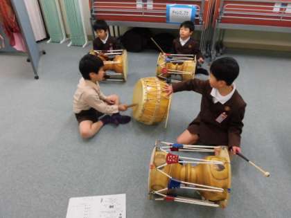 身近な国の文化に親しむ週間では、韓国、朝鮮、中国の遊びや楽器などを体験しました。やったことのある子どもたちもいて、ルールを教えあいながら取り組む姿もみられました。日本にも似たような遊びがある!!という声もあり、より身近に感じるようでした。