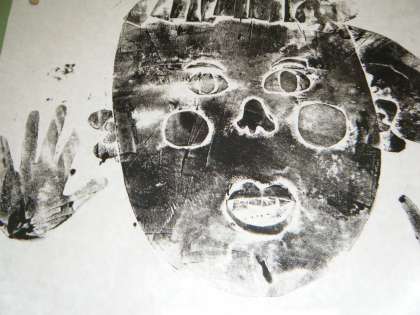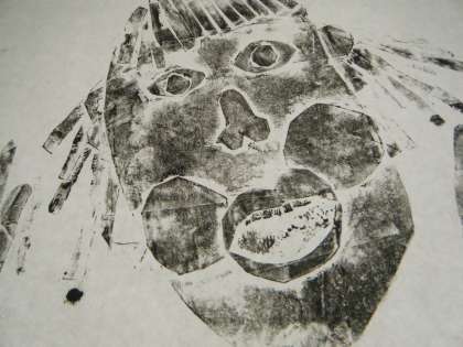昨日は、寒い中参観に多数お越しいただきありがとうございました。図画工作でつくった紙版画が刷りあがってきました。髪の毛や歯の1本1本まで細かく切って貼りました。刷るときはてんやわんやの大騒ぎでしたが、刷りあがったときは、「わー、すごい。」「きれいにできた。」と、とても喜んでいました。
