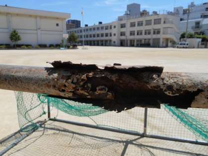 管理作業員さんがぼろぼろになったサッカーゴールをなおしてくれました。