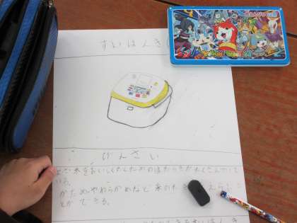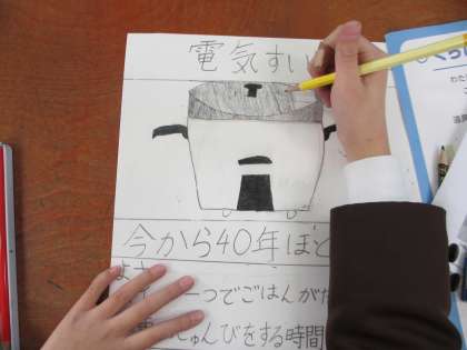 昔の道具が何に変わったのかを調べて、グループで調べて書きました。