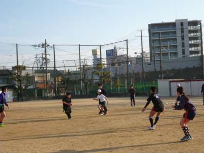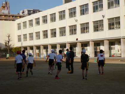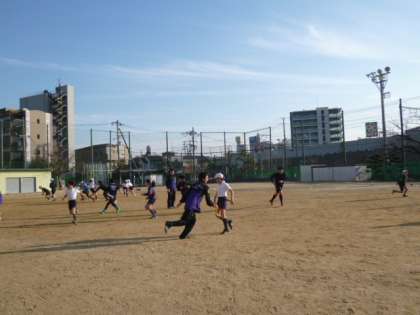 新東淀中学校との小中連携の一環として、5,6年生の希望者が、タグラグビーを体験しました。