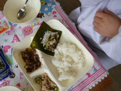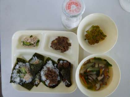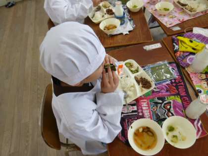 手巻きごはんは給食では初登場だったので、子ども達の様子を教室に見に行ってみました。