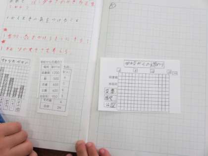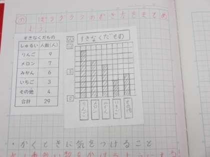 表題をつけることや単位をつけることなど注意しながら棒グラフをかきました。