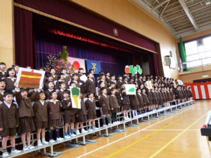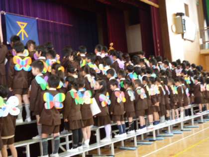 小学校生活1年間で、こんなにも成長した2年生。やさしくたくましいお兄さん・お姉さんとして、1年生を迎えてくれました。