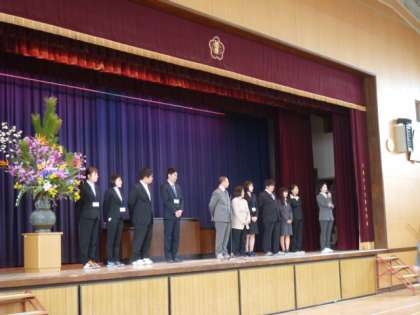 着任式では、新転任の教職員11名と子どもたちが、元気いっぱい「よろしくお願いします!!」とあいさつをしました。