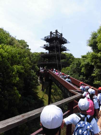 今日は春の遠足で万博公園に行きました。天気にも恵まれ、絶好の遠足日和でした。園内では、芝生広場でみんな遊びをしたり、自然観察学習館で万博の生き物の観察をしたりしました。とても長い距離を、子ども達は最後までがんばって歩きました。