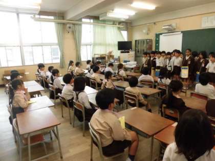 今日は、学校探検がありました。2年生のお兄ちゃん、お姉ちゃんと手をつないでいろいろなところを案内してもらいました。「めっちゃ楽しかった!」「校長室に行ったよ」「事務室につれていってくれた!!」とすごく楽しく活動できました。2年生のみなさん本当にありがとうございました。