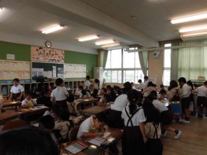 学校たんけんをまわり終えた班も、教室で1年生となかよくいっしょになぞなぞをしたり、ぬりえをしたりして楽しんでいました(^O^)