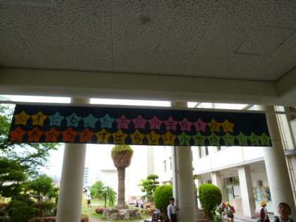 玄関を入ってすぐのところに掲げられていますので、登下校のたびに子どもたちが見上げています。80周年への期待がふくらんできました。