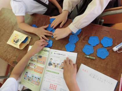 算数では具体物をつかって、初めてのわり算を勉強しました。自分の考えを発表したり、友達の意見を聞いたりして、問題を解いています。