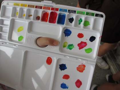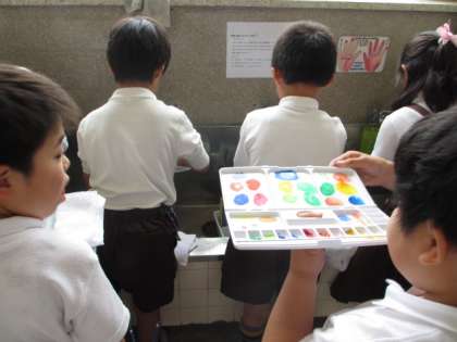 用具の置き方、パレットの持ち方、水の量・・・をしっかり学習しました。