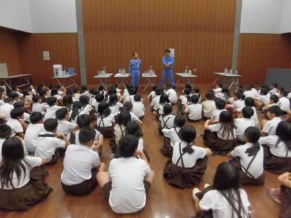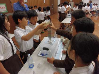 社会見学では、私たちの飲んでいる水がどうやってできているのか動画を見て確認したり、実際に水をきれいにするための実験もしました。
