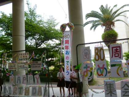 いよいよ、みんなで練習してきた「菅原80バースデー」の歌の時間です。