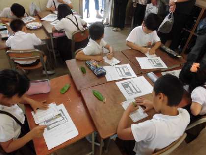参観では「はがきをかこう」に取り組みました。事前にはがきを送りたい相手の住所を調べてきた子ども達は、いよいよはがきに住所を書く時、とても集中して気持ちを込めた字を書くことができていました。はがきの裏に絵を書く時には、送る相手の好きなものを考えて書くことができました。