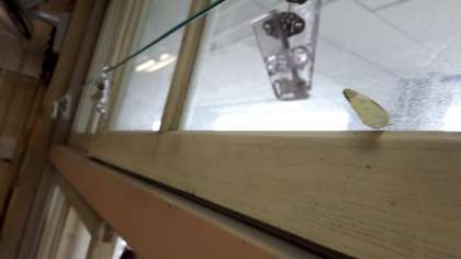 教室で育てていたモンシロチョウの幼虫(アオムシ)がサナギになり、無事にモンシロチョウになりました。