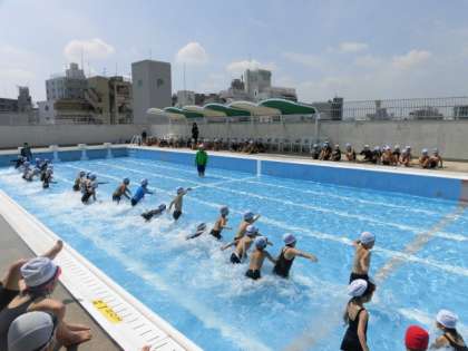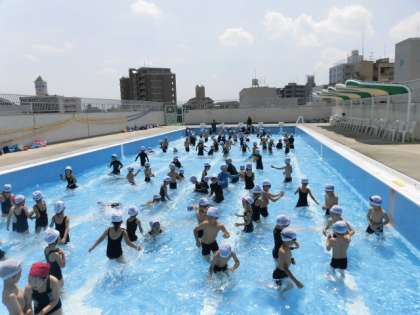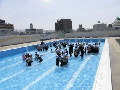 じゃんけん列車では、長く列をつくっている子や泳いで移動している姿が見られました。宝探しは、1組・4組vs2組・3組でしました。結果は、2組・3組の勝利でした。次は1組・4組が勝てるよう頑張ってくださいね。