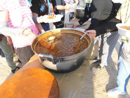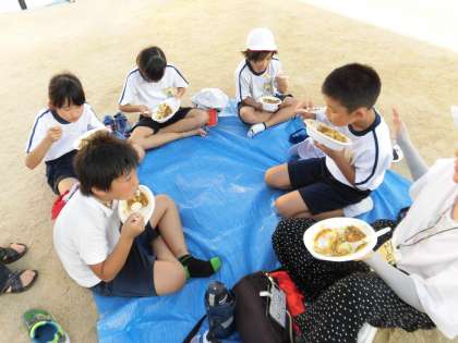 がんばって作ったカレーが出来上がりました。待ちに待った食事タイムです。「おいしー。」「おかわり。」という声があちらこちらから聞こえてきます。どの子もたくさんおかわりしてお腹いっぱい、大満足です。