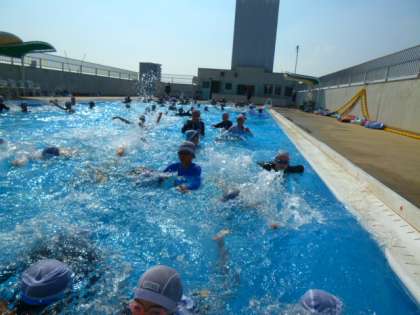 夏休み前最後の水泳学習では、クラス対抗ゲーム「カラフルカップ」を行いました。「水中伝言ゲーム」や「宝さがし」をやり、大盛り上がり!