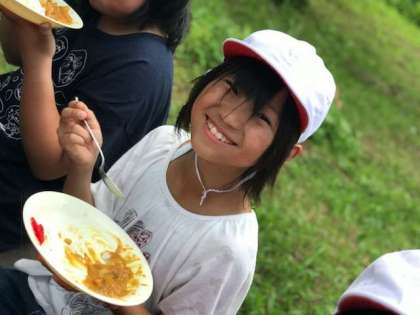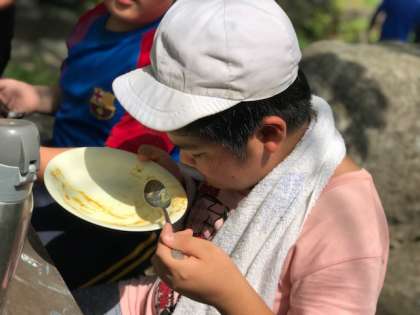 力を合わせてつくり、大自然を感じながらいただくカレー。