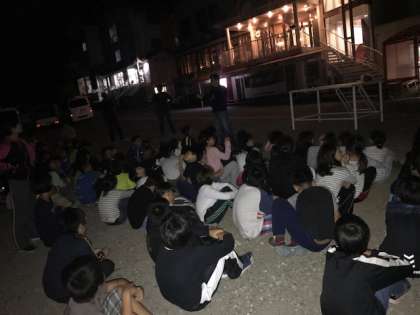 校長先生(理科のスペシャリストです)の解説による、星の観察が始まりました。