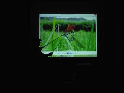 迫力ある掲示物や映像での説明など、とてもわかりやすく、子どもたちは興味をもって話を聞いていました。最後にいなごの佃煮が出た時は、みんなびっくりしました。でも、多くの子どもたちが「おいしい」と食べていました。見たり、聞いたり、食べたりと、楽しい体験授業だったと思います。