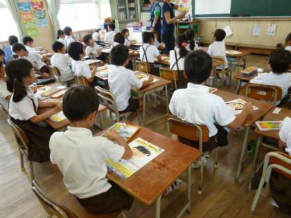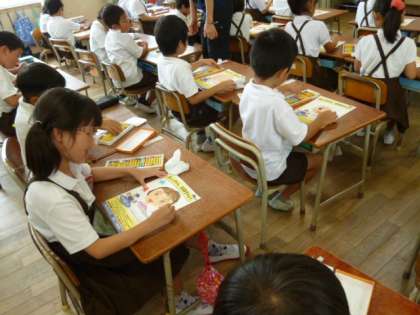 お年寄りをターゲットにした特殊詐欺が後を絶ちません。東淀川警察署より、敬老の日に向けたポスターづくりへの協力依頼があり、1年生がかわいい(?)おじいさん、おばあさんの顔を書きました。