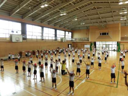 前回に引き続き、ダンスの練習をしました。今日は運動会で踊るダンスを最初から最後までとおしました。だんだんダンスの速さに慣れてきて踊りが様になってきました。