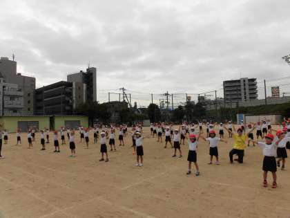 1・2時間目に講堂と運動場でダンスをおどりました。前に初めて運動場でダンスを踊ったときよりも隊形移動もスムーズになっていきました。また、入場・退場の練習もし、いよいよ完成へと近づいています!